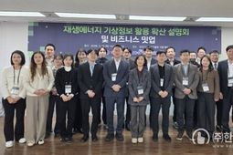 ㈜한국탑뉴스 한민석 기자 | 기상청은 2050 탄소중립 실현과 재생에너지 산업 경쟁력 강화를 지원하기 위해 3월 19일 오후 2시, 서울 서대문구 기상산업기술원에서 '재생에너지 기상정보 활용확산 설명회'를 개최했다. 기상청은 ‘국가 기후적응 역량 강화’라는 국정과제 기조에 맞춰, 재생에너지 발전소 입지 선정 및 효율적 발전 운영에 핵심적인 바람 분석 정보(재현바람장)와 햇빛 분석 정보(일사량 자원지도) 등 재생에너지 기상정보를 개발하여 대외에 제공하고 있다. 재생에너지 기상정보의 활용·확산을 위해 개최된 이번 설명회에는 기상청과 기상산업기술원을 비롯하여, 재생에너지 관련 민간기업, 기상기업 등 민관 관계자 50여 명이 참석했다. 설명회에서는 △기상청의 재생에너지 기상정보 정책, 기상정보를 활용한 발전량 예측 시스템 개발 등에 대한 △재생에너지 관련 기업의 기상정보 활용 사례에 대한 발표가 이루어졌다. 이어서 △민관 및 기업 간 협력 방안에 대한 발표와 논의가 진행됐으며, 특히 발전단지 운영의 안정성과 발전 효율성, 의사결정 고도화를 위한 협력 방안이 논의됐다. 이미선 기상청장은 “재생에너지의 확