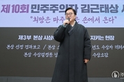 ㈜한국탑뉴스 송행임 기자 | 禹의장 "김근태 정신 이어 더 단단한 민주주의 만들 것 '제10회 민주주의자 김근태상 시상식' 참석 "김근태 정신은 평화, 인권, 사람의 가치를 가장 중요하게 생각하는 것“ ▲우원식 국회의장이 12일(목) 오전 국회의원회관에서 열린 '제10회 민주주의자 김근태상 시상식'에 참석해 발언하고 있다.(사진=국회사무처 사진팀) 우원식 국회의장은 12일(목) 오전 국회의원회관에서 열린 '제10회 민주주의자 김근태상 시상식'에 참석해 수상자들을 축하하고 김근태 정신의 계승과 실천을 강조했다. '김근태상'은 우리 사회의 민주주의 발전에 헌신한 이들을 조명하기 위해 2016년 제정됐으며, 지난 9회 시상식에서는 우 의장이 본상을 수상한 바 있다. 우 의장은 "김근태 정신은 어떤 어려움 속에서도 평화, 인권, 그리고 사람의 가치를 가장 중요하게 생각하는 것"이라며 "우리나라 민주주의를 앞장서서 끌어온 민주주의자 김근태상을 수상했다는 것은 정말 영광스러운 일"이라고 말했다. 우 의장은 또한 "김근태 선배는 일한 만큼의 대가를 받고, 시장경제를 따뜻하게 만들고, 억울한 꼴을 당하지 않는 사회를 만드는 것이 민주주의의 목표라고 했다"며 "국회의장으로서