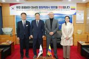 ㈜한국탑뉴스 차복원 기자 | 창원특례시는 24일 알레한드로 펠라에스 로드리게스(Alejandro Peláez Rodríguez) 주한 콜롬비아 대사가 창원시를 방문해 양국 간 산업·통상 협력과 글로벌비즈센터(GBC) 남미 거점 확장 방안을 논의했다고 밝혔다. 이번 방문은 지난 14일 열린 ‘창원시–콜롬비아 교류 간담회’의 후속으로, 창원의 조선·전기산업과 콜롬비아의 에너지·자원 산업을 연결하는 “실질 협력의 첫걸음”이자, 양국의 신뢰와 교류를 한층 더 깊게 하는 계기가 됐다. 알레한드로 펠라에스 로드리게스 주한 콜롬비아 대사는 창원의 기술력과 산업 기반에 깊은 관심을 표하면서, “콜롬비아가 추진 중인 ‘정의로운 에너지 전환(Just Energy Transition)’ 정책 속에서 창원의 기술은 매우 중요한 역할을 할 수 있다”고 강조했다. 장금용 창원특례시장 권한대행은 “창원은 산업의 도시이자 사람의 도시로, 기술과 신뢰가 연결될 때 두 나라의 거리는 더 가까워질 것”이라며, “글로벌비즈센터 남미 거점 추진을 통해 창원 기업들이 콜롬비아와 함께 성장할 수 있도록 하겠다”고 밝혔다. 한편, 콜롬비아는