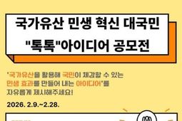 ㈜한국탑뉴스 한민석 기자 | 국가유산청은 2월 9일부터 2월 28일까지 국가유산을 활용해 국민 삶의 질을 높이는 민생형 정책을 발굴하기 위한 '국가유산 민생 혁신 대국민 “톡톡” 아이디어 공모전'을 개최한다. 올해 처음으로 실시되는 이번 공모전은 국가유산 정책을 기존의 보존 중심에서 나아가 생활 · 복지 · 경제 · 교육 · 인공지능(AI) · 지역 활성화 등 국민 삶 전반으로 확장하는 것을 목표로 하며, 공모 분야는 총 세 가지이다. 먼저, ‘국민과 함께 하는 소통·협력’ 분야에서는 국민·지자체·민간·정부 부처가 함께 협력해 K-헤리티지를 지역과 일상 속에서 즐기고 활용할 수 있는 아이디어 또는 K-헤리티지를 통해 국민이 체감할 수 있는 민생 효과를 만들어낼 수 있는 제안을 기다린다. ‘대국민 서비스’ 분야에서는 국가유산의 보존·관리, 활용 과정에서 국민이 느끼는 불편을 줄이고, K-컬처 콘텐츠와 연계해 국가유산을 더 쉽고 친근하게 누릴 수 있는 서비스 개선 아이디어를 모집한다. ‘일하는 방식 혁신’ 분야에서는 국가유산 관련 업무의 불필요한 절차를 줄이고, 인공지능(AI)과 디지털 기술 등을 활용