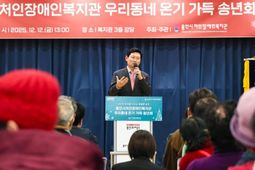 ㈜한국탑뉴스 차복원 기자 | 용인특례시는 12일 용인시처인장애인복지관이 한해 동안 나눔을 실천한 후원자와 자원봉사자를 위한 ‘우리동네 온기가득 송년회’를 열었다고 밝혔다. 이 행사에 참석한 이상일 용인특례시장은 장애인복지를 위해 헌신한 후원자와 자원봉사자, 복지관 관계자들을 격려하고, 감사의 마음을 나눴다. 이상일 시장은 “처인장애인복지관은 장애인 복지 수준 향상을 위해 훌륭한 활동을 해왔다”며 “이 자리에 계신 후원자와 자원봉사자 여러분의 헌신적인 노력은 장애와 비장애의 벽을 허물고, 장애인에게 희망을 전달했다”고 말했다. 이 시장은 “용인특례시는 장애인 복지 활동과 정책을 선도적으로 운영하고 있고, 장애인을 위한 시설개선에도 적극 노력하고 있다”며 “장애인복지관에 많은 후원이 모이고 있고, 이 마음이 용인특례시를 따뜻한 공동체 사회로 만들고 있다”고 했다. 이날 행사에는 이상일 시장을 비롯해 지역 주요 내빈, 후원자, 자원봉사자, 복지관 이용자 등 200여 명이 참석했다. 행사는 식전 공연을 시작으로 송년회 영상 시청, 송년사 및 축사, 유공자 표창, 응원 메시지 퍼포먼스 순으로 진