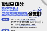 ㈜한국탑뉴스 고화랑 기자 | 광주시교육청이 학부모의 교육행정통합 궁금증을 해소하기 위해 두 차례에 걸쳐 ‘광주·전남 교육행정통합 설명회’를 개최한다. 첫 번째 설명회는 17일 오후 1시30분 광주시민협치진흥원에서 열리며, 이어 24일 오전 9시30분 AI교육원에서도 진행된다. 설명회는 ▲교육행정통합 추진 배경 및 경과 안내 ▲통합 이후 교육정책 변화와 전망 설명 ▲학부모 질의에 대한 답변 등 순으로 운영된다. 특히 이정선 교육감이 교육행정통합 추진 경과, 전망 등을 설명하고 학부모들의 질의에 응답하며 궁금증을 해소할 예정이다. 참여를 희망하는 학부모는 설명회 전까지 통합 플랫폼 ‘광주 학부모와’ 또는 ‘네이버폼’을 통해 신청하면 된다. 시교육청은 많은 학부모가 참여할 수 있도록 학교 가정통신문과 모바일 알림장, 누리집 등을 통해 안내했다. 이정선 교육감은 “광주‧전남 교육행정통합은 미래 교육환경 변화에 대응하기 위한 중요한 과정”이라며 “이번 설명회를 통해 학부모와의 소통을 강화하고 현장의 의견을 수렴해 교육행정통합 정책 추진 과정의 민주성과 투명성을 높아질 것으로 기대한다