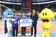 ㈜한국탑뉴스 구민성 기자 | 이장우 대전시장은 21일 대전충무체육관에서, 6개월간의 V-리그 대장정에 나서는 연고팀 대전 삼성화재 블루팡스의 승리를 기원하는 시구에 참여했다. 1세트 종료 후에는 삼성화재 블루팡스×꿈돌이 굿즈를 공동 브랜딩을 위한 상호협력 협약을 체결하고, 스포츠마케팅을 확장하기로 했다.