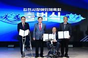 ㈜한국탑뉴스 송행임 기자 | 김천시장애인체육회는 2월 25일 김천시청 3층 강당에서 ‘스포츠 중심도시 김천에서 장애인과 비장애인 모두가 함께하는 스포츠 환경 조성’을 위한 김천시장애인체육회의 공식 출범식을 가졌다. 이번 행사에는 배낙호 회장을 비롯하여 장애인체육회 임원 등 300여 명의 내빈들이 참석하여 장애인체육회의 힘찬 출범을 알렸다. 행사는 장애인과 비장애인이 조화롭게 어우러지는 김천의 미래를 그리듯 시립교향악단의 연주와 시립합창단의 합창으로 구성된 식전 공연으로 시작됐으며, 여상규 상임부회장의 출범선언, 손태옥 사무국장의 경과보고가 진행됐다. 이어 회기의 릴레이 전달, 도장애인체육회의 인준패 전수, 공로패 수여, 가맹단체 인준서 수여가 진행됐으며, 배낙호 회장의 기념사, 안용우 도장애인체육회 상임부회장 격려사, 나영민 의장, 박선하 도의원, 최한동 김천시체육회장의 축사와 떡케이크 절단 퍼포먼스가 이어졌다. 김천시는 2024년 12월 2일 장애인체육회 설립추진계획을 수립하고 12월 11일 설립준비위원회 구성, 수차례의 회의를 거치고 규약 및 제규정의 제정, 인력채용 및 사무실 인프라 구축 등