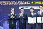 ㈜한국탑뉴스 차복원 기자 | 대구광역시는 9월 24일 오후 4시 30분, 시청 동인청사 2층 상황실에서 국내 택배부문 1위 기업인 ‘쿠팡로지스틱스서비스(유)’(대표 홍용준, 이하 ‘쿠팡로지스틱스서비스’)와 수성알파시티 내 첨단 스마트물류센터 구축을 위한 투자유치 협약을 체결했다. 쿠팡의 배송 전문 자회사인 쿠팡로지스틱스서비스는 이번 협약을 통해 수성구 대흥동 일원에 618억 원을 투자, 연면적 약 75,000㎡(약 22,700평) 규모의 AI 기반 첨단 스마트물류센터를 조성할 계획이다. 이번 투자를 통해 쿠팡로지스틱스서비스는 지역 내 ‘로켓배송’ 품목 및 권역을 확대하고, 배송시간 단축은 물론 지역 소상공인의 유통비 절감과 매출 증대에도 긍정적인 영향을 미칠 것으로 기대하고 있다. 이번에 구축되는 수성 스마트물류센터는 쿠팡 로켓배송의 핵심기술인 AI 기반 수요량 예측을 통해, 고객의 주문 빈도가 높은 주요 상품을 고객과 가까운 곳에서 미리 보관·관리하는 시설로, 주문부터 출고, 배송까지 걸리는 시간과 거리를 크게 단축할 수 있다. 아울러, 기존에 로켓배송의 혜택을 보지 못했던 인근 경북 지역까지
