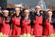 ㈜한국탑뉴스 송행임 기자 | 대전시의회 조원휘 의장은 12일 엑스포시민광장에서 개최된 제17회 따뜻한 겨울나기 김장 대봉사에 참석해 새벽부터 이어진 자원봉사자들의 따뜻한 손길과 미소에 희망을 더했다. 이날 행사는 지역을 대표하는 단체·기관장, 사회공헌 협약기관·단체, 자원봉사자 등 800여 명이 참석한 가운데 대전사랑운동센터장과 자원봉사연합회장의 대회사를 시작으로 주요내빈 인사말씀, 김장시연, 후원금 전달식 등 순으로 진행됐고, 김장 김치는 세대당 10kg씩 저소득 소외계층 5,500세대에 전달될 예정이다. 조원휘 의장은 “추운 계절, 이웃의 밥상에 온기를 더하기 위해 이른 새벽부터 달려와 주신 800여 명의 자원봉사자분들께 깊은 감사의 마음을 전하고, 여러분들의 따뜻한 손길과 미소는 대전의 사랑 온도를 한층 높였다”면서, “오늘 정성껏 버무린 김치는 겨울철 가장 든든한 반찬으로, 지친 이웃들에게 매서운 겨울바람을 녹이고 따뜻한 밥상과 희망을 선사하는 소중한 선물이 되길 소망한다”고 말했다.