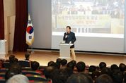 ㈜한국탑뉴스 차복원 기자 | “유심히 관찰하고, 상상하면서 고정관념을 깨고 호기심으로 도전하고 시도하면서 여러분의 무궁무진한 꿈을 펼쳐보길 바란다.” 이상일 용인특례시장은 3일 오후 수지구 풍덕천동에 있는 풍덕고등학교에서 학생들을 대상으로 ‘관찰과 상상과 호기심은 창조로 이어진다’는 주제로 특강하며 이같이 강조했다. 풍덕고 대강당에서 열린 특강에는 학교에 소속된 학생과 학부모, 교사 등 약 200명이 참석했다. 이날 이 시장은 학생들에게 관찰력과 상상력, 그리고 꿈을 실현하기 위한 도전 정신의 중요성을 강조했다. 이 시장은 특강을 시작하며 “인생이 챕터 1부터 10까지 있다면 시장인 저는 챕터 9쯤에 있지만 여러분은 아직 챕터 1이 아닐까 싶다. 여러분의 미래는 무궁무진한 만큼 열린 마음, 열린 태도를 가지고 다양한 각도에서 생각해 보고, 다른 사람의 생각도 무시하지 말고 경청하고 참조하는 노력을 기울이면 좋겠다. 다름이 틀림이 아니므로 고정관념이나 통념에 머무르지 말고 유연한 생각을 하기 바란다”고 말했다. 이 시장은 “무엇인가를 할 때 유심히 관찰하고 이 궁리, 저 궁리를 하는 등