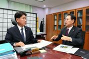 ㈜한국탑뉴스 차복원 기자 | 이완섭 서산시장이 2026년도 국비 확보를 위한 발품행정에 총력을 기울인다. 이 시장은 13일 국회에서 성일종 국방위원장을 만나 2026년도 정부 예산 심의 과정에서 서산시 주요 현안 사업에 대한 국비 반영과 증액을 건의하고, 각 사업의 필요성을 직접 설명했다. 이날 논의된 주요 사업은 ▲한우역사박물관 ▲한국생명공학연구원 서산분원 ▲순환형 매립지 조성 ▲국립국악원 서산분원 ▲도심주변 친환경호수 조성 등 5개다. 시는 한우산업의 본고장인 운산면에 한우역사박물관 건립할 방침이며, 이를 위한 첫 단계로 기본계획 및 타당성 용역비 2억 원의 국비를 요청했다. 또한, 이 시장은 2026년 한국생명공학연구원 서산분원 설계비로 4억 1천만 원을 반영해 줄 것을 건의했다. 한국생명공학연구원 서산분원(총사업비 448억 원)은 최근 타당성 조사를 통과해 순항 중이며, 융합그린바이오의 핵심 거점이 될 전망이다. 이어, 관내 매립장 포화에 대응해 안정적인 폐기물 처리 체계를 구축하고자 추진 중인 환경종합타운 순환형 매립지 조성을 위한 기본 및 실시설계비 2억 원 확보