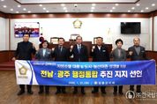 ㈜한국탑뉴스 송행임 기자 | 장흥군의회는 21일 의회 본회의장에서 정부의 광주·전남 행정통합 추진 방침을 환영하며, 농산어촌을 포함한 전 지역의 균형발전을 전제로 한 행정통합을 지지하는 성명서를 발표했다. 성명서에서 의회는 정부가 통합특별시에 대한 대규모 재정 지원과 행정 권한 강화를 약속한 점을 긍정적으로 평가하며, 이는 수도권 중심 성장 구조를 넘어 지방 주도 성장으로 전환하겠다는 국가 차원의 정책 전환이라고 밝혔다. 특히 행정통합이 선언에 그치지 않고 실질적인 성과로 이어질 수 있는 제도적 기반이 마련되고 있다고 강조했다. 또한 의료·교육·고용 등 주요 생활 영역에서 광주에 대한 의존도가 높은 장흥군의 현실을 언급하며, 광주·전남 행정통합을 통해 광역 차원의 교통·의료·돌봄 체계가 구축될 경우 군민 생활 여건이 실질적으로 개선될 것으로 기대했다. 다만 행정통합이 대도시 중심으로 추진될 경우 농산어촌이 소외될 수 있다는 우려를 제기하며, 재정 배분의 형평성 확보와 중남부권을 포함한 농산어촌 특화 발전 방안이 제도적으로 보장돼야 한다고 밝혔다. 김재승 의장은 “광주·전남 행정통합이 지