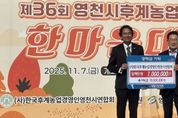 ㈜한국탑뉴스 차복원 기자 | 영천시는 7일 한국후계농업경영인 영천시연합회에서 100만원의 장학금을 영천시장학회에 기탁했다고 밝혔다. 한국후계농업경영인 영천시연합회는 약 1,200여 명의 회원을 보유한 영천시 최대 농업인 단체로, 농업인의 권익 향상과 농업·농촌 발전을 위해 활발한 활동을 이어가고 있다. 또한, 지역 인재 양성에도 꾸준한 관심을 기울이며, 현재까지 총 기탁금이 1,950만원에 달한다. 이날 영천강변공원에서 열린 ‘2025년 후계농업경영인 한마음대회’에서 장학금을 전달한 권대형 회장은 “회원들과 뜻을 모아 교육환경 개선과 우수 인재 양성을 위한 장학금을 꾸준히 기탁하고 있다”며, “많은 학생들이 장학 혜택을 받으며 지역을 대표하는 인재로 성장하길 바란다”고 소감을 전했다. 최기문 이사장은 “소중한 정성이 담긴 장학금으로 수혜 학생들이 체감할 수 있는 맞춤형 장학사업 발굴에 최선을 다하겠다”고 감사의 뜻을 전했다.