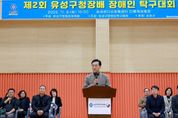 ㈜한국탑뉴스 송행임 기자 | 대전시의회 조원휘 의장은 8일 유성반다비체육센터(유성구 신성동)에서 개최된 제2회 유성구청장배 장애인 탁구대회에 참석해 안전한 대회 진행을 기원하며, 누구나 스포츠를 즐길 수 있는 포용의 체육도시 조성을 위해 정책적 관심과 지원을 약속했다. 이날 대회는 지역을 대표하는 단체·기관장, 선수 및 대회 관계자, 시민 등 150여 명이 참석한 가운데 구 탁구협회장의 대회사를 시작으로 유공자 표창, 주요내빈 축사, 경품추첨 등의 개회식을 마친 후 본격적인 대회가 이어졌다. 조원휘 의장은 “한국의 장애인탁구는 2025년 베이징 아시아선수권대회에서 금메달 9개 등 32개의 메달을 획득, 역대 최고 성적을 거두며 눈부신 역사를 새로 쓰고 있다”면서, “작은 공 하나가 네트를 넘나들며 서로를 이어주듯, 오늘 여러분의 라켓에서 도전과 희망의 감동이 남길 바라며, 대전시의회도 장애인 체육이 활성화되고 누구나 차별 없이 스포츠를 즐길 수 있는 대전을 만들기 위해 최선을 다하겠다”고 말했다.