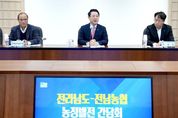 ㈜한국탑뉴스 차복원 기자 | 김영록 전라남도지사는 24일 도청 서재필에서 전남농협 조합장 등 13명과 간담회를 열어 농정 발전 협력 방안을 심도 있게 논의했다. 간담회에는 4선 이상 조합장들이 다수 참석해 지역별 농업 현안과 협력사업을 공유하고, 전남 농업의 경쟁력 강화와 농업인 경영안정을 위한 다양한 의견을 제시했다. 김영록 지사는 이 자리에서 “올 한 해 봄부터 가을까지 이어진 재해와 일부 농산물 가격 급등락 속에서 농민과 함께 애쓰고 고민하느라 수고 많았다”며 감사의 뜻을 전했다. 이어 “농협은 우리 농정의 핵심축”이라며 “탁월한 리더십으로 전남 농업의 미래를 여는데 큰 역할을 해줄 것”을 당부했다. 전남도와 전남농협은 생산비 절감, 농가 경영안정, 유통 활성화를 목표로 ▲원예작물 해충포획기 지원 ▲바이오차(토양환경개선제) 지원 ▲원예 분야 재해예방시설 지원 ▲농촌인력중개센터 운영 ▲농업재해보험사업 ▲친환경농산물 꾸러미 지원 ▲농촌 왕진버스 지원 등 총 18개 사업을 공동 추진했다. 올해 투입된 협력사업비는 2천755억 원에 달한다. 전남도는 앞으로도 농협과 협력 체계를 더욱 강화