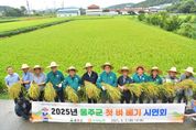 ㈜한국탑뉴스 차복원 기자 | 울산 울주군이 2일 두북농협 RPC 육묘장에서 이순걸 군수와 지역 농업인 등이 참석한 가운데 올해 첫 벼 수확을 기념하는 기념식을 가졌다. 이번 행사는 울주군 농업인들의 땀과 노력의 결실을 확인하는 뜻깊은 자리로서 올해 기록적인 폭염과 가뭄 등 어려운 기상 여건을 이겨내고 자란 벼의 첫 수확을 축하하고, 한 해의 풍년 농사를 기원하는 의미로 마련됐다. 이날 행사에서는 울주군 두서면에 거주하는 최현식(48)씨의 논(두서면 전읍리 682-3번지 일원, 2만3천190㎡)에서 조생종 명품벼를 수확했다. 두북농협 자체 품종인 조생종 명품벼는 4월에 모내기를 하면 추석 전에 수확이 가능해 농가 노동력 분산에도 도움이 된다. 또 밥맛이 좋을 뿐만 아니라 이른 수확으로 후기작 보리 등을 파종해 농지의 활용도를 높일 수 있어 농가에 큰 도움이 된다. 이순걸 군수는 “올해 첫 벼 수확 행사를 통해 어려운 기상 여건 속에서도 포기하지 않고 노력한 농업인들의 결실을 확인할 수 있어 뜻깊은 시간이 됐다”며 “풍년을 기원하는 마음을 담아 앞으로도 농업인들의 소득 향상과 쌀값 안정화를