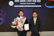 ㈜한국탑뉴스 차복원 기자 | 김찬진 인천 동구청장이 지난 18일 서울 종로구 동아미디어센터에서 열린 ‘2025년 코리아 스포츠진흥 대상’리더 부문에서 대상을 수상했다. ‘코리아 스포츠진흥 대상’은 스포츠동아가 주최하고 문화체육관광부, 대한체육회, 국민체육진흥공단 등이 후원하는 상으로 ▲리더 ▲브랜드 ▲스포츠 장비 및 시설 ▲스포츠 의학 ▲생활체육 ▲영스포츠 ▲전통체육 ▲스페셜 등 분야별로 선정해 시상하고 있다. 리더 부문에서 수상한 김찬진 동구청장은 생활체육 진흥을 통한 주민 건강 증진 및 삶의 질 향상에 이바지 한 부분에서 높은 평가를 받았다. 김찬진 청장은 민선 8기 동안 ▲인천시 군구 최초 장애인체육회 설립 ▲동호인 생활체육대회 활성화 ▲체육회 및 장애인체육회 활성화 ▲주민 체육시설 관리 및 화도진스케이트장 운영 ▲여자태권도 및 유소년 축구단 활성화 ▲체육 분야 적극 행정으로 주민 화합 기여 등의 성과를 냈다. 김찬진 동구청장은 “동구는 구민 모두의 건강을 위해 인천시 군구 최초로 장애인 체육회를 설립 했다”며 “더 많은 시민들이 생활 체육의 즐거움을 경험하고 건강한 삶을 누릴 수 있도록 지원
