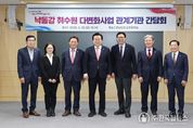 ㈜한국탑뉴스 송행임 기자 | 부산시는 어제(20일) 오후 4시 경상남도청 도정회의실에서 개최된 '낙동강 취수원 다변화사업 관계기관 간담회'에서 물 문제 해결을 위한 의미있는 논의를 진행했다고 밝혔다. 간담회에는 박형준 부산시장, 박완수 경상남도지사, 박상웅 국회의원, 의령군수, 창녕군수, 기후에너지환경부 물이용정책관, 창녕군 반대대책위원장 등 총 7명이 참석하여 사업 전반과 주민 우려사항을 심도 있게 논의했다. 또한 합천군을 비롯해 수혜 지역인 창원시·양산시·함안시·김해시 부단체장이 배석하는 등 관련 지자체가 모두 함께해 자리를 더욱 뜻깊게 했다. 이번 간담회는 ▲[기후에너지환경부] 낙동강 취수원 다변화사업 추진상황 보고 ▲[부산시] 취수지역 상생협력방안 보고 ▲[토론] 질의응답 및 기관별 입장 공유 순으로 진행됐다. 기후부는 낙동강 취수원 다변화사업 추진상황을 그동안 반대대책위원회가 제시한 주요질의에 대한 응답 형식으로, ▲지점별 취수계획 ▲지하수위 영향범위 ▲지하수위 감소 대책 ▲손실보상 방안 등을 설명했다. 부산시는 ▲부산-창녕 상생발전기금 조성 ▲창녕군 출신 학생 장학금·기숙사