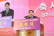 ㈜한국탑뉴스 송행임 기자 | 주낙영 경주시장이 동국대학교 WISE캠퍼스 입학식에 참석해 신입생들의 힘찬 출발을 응원했다. 경주시는 주낙영 시장이 지난 20일 동국대학교 WISE캠퍼스 입학식에 참석해 신입생들을 격려했다고 22일 밝혔다. 이날 입학식에는 돈관 스님과 윤재웅 동국대 서울캠퍼스 총장, 류완하 WISE캠퍼스 총장을 비롯해 총동창회 관계자, 신입생·학부모 등 2,000여 명이 참석했다. 행사는 개식 선언과 국민의례를 시작으로 입학 허가 선언 및 장학증서 수여, 총장 식사, 이사장 치사, 내빈 축사, 홍보영상 상영, 교가 제창 등의 순으로 진행됐다. 주낙영 시장은 축사에서 “오늘 여러분은 120년의 역사를 지닌 동국대학교의 새 가족이 됐으며, 동시에 신라 천년의 숨결이 살아 숨 쉬는 경주의 새로운 가족이 됐다”고 말했다. 이어 “경주는 전통 위에 새로운 미래를 만들어가는 도시”라며 “SMR 국가산업단지 조성과 e-모빌리티 산업 등 첨단 산업 기반을 확충하고, 관광·문화·국제회의 도시 기반을 강화해 세계와 연결되는 미래 경쟁력을 더해가고 있다”고 강조했다. 또 “대학 생