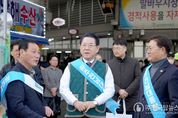 ㈜한국탑뉴스 송행임 기자 | 김영록 전라남도지사는 22일 광주 말바우시장을 찾아 전남·광주 행정통합 비전을 공유하고, 지역 상권과 경제에 미칠 영향, 기대효과 등에 대해 다양한 의견을 청취했다. 말바우시장은 담양·곡성·장성 주민들도 농수산물을 직접 구매하거나 판매하는 광주 최대 전통시장으로, 전남·광주 북부권 지역경제 흐름과 소비심리를 체감할 수 있는 대표 상권이다. 김영록 지사는 이날 현장에서 박창순 말바우시장상인회장과 한승주 전남도상인연합회장 등을 만나 전남·광주 행정통합 추진에 따른 애로사항과 건의사항을 경청했다. 이어 온누리상품권으로 지역 특산품을 구매하고 이용객과 인사를 나누며 전통시장 이용을 당부했다. 또한 전남·광주 북부권 전통시장 활성화 방안에 대해서도 현장 의견을 수렴했다. 김영록 지사는 “전남·광주 행정통합은 지역 상권을 발전시키는 핵심 성장 동력으로, 새로운 도약의 기반을 마련할 것”이라며 “전통시장이 활기를 되찾도록 많은 이용 바란다”고 당부했다.