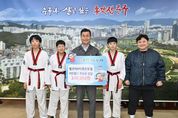 ㈜한국탑뉴스 차복원 기자 | 힘찬태비태권도장이 11월 7일 오후 4시 30분 중구청 구청장실을 찾아 울산사회복지공동모금회를 통해 이웃돕기 후원금 30만 원을 전달했다. 이번 전달식에는 김영길 중구청장과 김아롱 힘찬태비태권도장 관장, 태권도장 아동 등 5명이 참석했다. 힘찬태비태권도장은 ‘2025년 종갓집 중구 체육대회’ 입장식(퍼레이드) 행사에 참여해 학성동 주민자치위원회로부터 받은 사례비를 전액 기부했다. 해당 후원금은 지역 내 홀몸 어르신 3명에게 각 10만 원씩 전달될 예정이다. 김아롱 힘찬태비태권도장 관장은 “아이들과 함께 지역 행사에 참여하고 나눔도 실천할 수 있어서 뜻깊다”며 “앞으로도 주변에 희망과 사랑을 전하기 위해 노력하겠다”고 말했다. 김영길 중구청장은 “어려운 이웃을 위해 따뜻한 마음을 모아주셔서 감사드린다”며 “겨울을 앞두고 홀몸 어르신의 생활을 살피고 지원하는 데 후원금을 잘 활용하겠다”고 밝혔다.