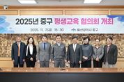 ㈜한국탑뉴스 차복원 기자 | 울산 중구가 11월 7일 오후 3시 30분 중구청 소회의실에서 2025년 중구 평생교육협의회를 개최했다. 중구 평생교육협의회는 평생학습 계획 수립·시행 및 제도 개선, 평생교육 유관기관 협력 증진에 관한 의견을 제시하는 기구로, 의장인 김영길 중구청장과 평생교육 전문가, 장애인 평생교육 관계자, 강북교육지원청 관계자 등 12명으로 구성돼 있다. 이날 참석자 8명은 올 한 해 평생학습 사업 성과와 내년도 평생학습 사업 추진계획 등을 살펴보고 다양한 의견을 나눴다. 한편, 중구는 지난 2007년 평생학습도시로 지정된 이후 다양한 평생학습 사업을 운영하며 평생학습 저변 확대에 힘쓰고 있다. 김영길 중구청장은 “평생학습을 통해 지역의 발전을 도모할 수 있도록 위원들의 적극적인 협조를 부탁드린다”며 “앞으로도 언제, 어디서나, 누구나 공평하게 배움의 기회를 누릴 수 있도록 평생학습 문화 확산에 힘쓰겠다”고 밝혔다.