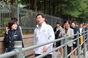 ㈜한국탑뉴스 차복원 기자 | 이상일 용인특례시장은 2일 오전 수지구 죽전로 대청초등학교 사거리 횡단보도에서 등교시간에 맞춰 진행된 어린이 교통지도 봉사에 참여하고 학교 주변통학로를 둘러보며 일부 시설 개선을 지시했다. 이 시장은 이날 원종태 대청초 교장, 학부모회·녹색어머니회 회원, 학생 등 30여 명이 함께해 교통사고 예방과 안전한 통학로 만들기 캠페인도 벌였다. 이 시장은 학부모들과 함께 통학로 주변을 둘러보며 시설을 점검하면서 ▲대청초 후문 좁은 인도에 풀이 우거져 보행을 방해하는 화단과 파손된 보도블록 정비 ▲인도와 차도의 경계가 없는 구간 볼라드 설치 ▲진흥더블파크 옆 가파른 경사와 급커브 구간 방지턱 추가 설치 ▲학교 주변 일부 보도블럭 교쳬 등을 지시했다. 이 시장은 학교 부근 사거리에서 교통 사고 방지와 보행 안전을 위한 교통지도 활동을 학부모들과 함께 하기도 했다. 이상일 시장은 “학생들이 안전하게 등교할 수 있도록 봉사해 주시는 녹색어머니회 회원님들과 학부모님들께 감사인사를 드린다”며 “시는 앞으로도 학교 주변의 통학 환경 개선읕 위한 노력을 계속 기울이겠다”고 말했다.