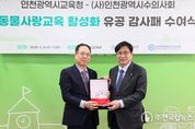 ㈜한국탑뉴스 고화랑 기자 | 인천광역시교육청은 8일 인천광역시수의사회(회장 오보현)로부터 ‘학교로 찾아가는 동물사랑교육’ 활성화에 기여한 공로로 감사패를 전달받았다. 이날 수여식에는 도성훈 교육감을 비롯해 인천광역시수의사회 오보현 회장, 이정구 부회장, 신호숙 학술이사, 류민상 사업이사 등이 참석했다. 이번 감사패 전달은 지난 2022년 9월 양 기관이 체결한 ‘동물학대 예방교육 민관협력을 위한 업무협약’ 이후, 지역사회 수의사들이 학교 현장을 직접 찾아 생명 존중의 가치를 전파해 온 협력의 결실을 기념하기 위해 마련됐다. 도성훈 교육감은 “현업으로 바쁘신 와중에도 우리 아이들의 생명 존중 교육을 위해 기꺼이 학교 현장으로 발걸음해주시는 수의사 선생님들께 깊은 존경과 감사를 표한다”며 “오늘 주시는 감사패는 현장에서 땀 흘려주신 수의사분들의 헌신에 대한 격려라 생각하고, 앞으로도 학생들이 생명을 책임 있게 대하는 미래 시민으로 성장하도록 지원을 아끼지 않겠다.”고 소감을 밝혔다. 현재 운영 중인 ‘학교로 찾아가는 동물사랑교육’은 인천광역시수의사회 소속 전문 수의사들이 초등학교 5학년 학급을 방문해