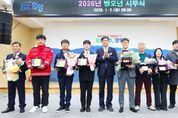 ㈜한국탑뉴스 차복원 기자 | 함양군은 2일 오전 9시 군청 대회의실에서 공무원, 유관기관, 민간인 등 150여 명이 참석한 가운데 ‘2026년 병오년 시무식’을 개최했다. 이날 시무식은 국민의례를 시작으로 표창 수여, 군수 신년사, 군민가 제창 등의 순으로 진행됐으며, 민간인과 유관기관 관계자, 함양군 기관, 공무원 등을 대상으로 총 35건의 표창이 수여됐다. 진병영 군수는 신년사에서 “작은 노력이 모여 큰 변화를 이룬다는 적토성산(積土成山)의 자세로 함양의 미래를 군민들과 함께 만들어 가겠다.”라며 신년사 서두를 열었다. 이어 “무엇보다 중요한 것은 군민의 삶과 가장 밀접하게 맞닿아 있는 지역경제 회복”이라며, “소상공인 및 자영업자에 대한 지원과 신규 기업 유치에 최선의 노력을 다하겠다.”라며 각오를 다졌다. 또한 진 군수는 “2026년은 함양군의 성장과 도약의 해”라며, “농업과 관광, 복지, 교육, 안전 정책 전반에 대한 종합적이고 체계적인 대응을 통해 군민 삶의 질을 제고하는 한 해를 만들어 가겠다.”라고 말했다. 한편, 시무식에 앞서 진병영 함양군수는 김윤택 군의회 의장과 군