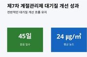 ㈜한국탑뉴스 송행임 기자 | 경기도가 지난해 12월부터 올해 3월까지 ‘제7차 미세먼지 계절관리제’를 시행한 결과, 최근 3년간 초미세먼지 평균 농도가 24㎍/㎥ 유지되는 등 안정적인 대기질을 유지하고 있다고 9일 밝혔다. 2019년 12월~2020년 3월 처음 시작한 미세먼지 계절관리제는 고농도 미세먼지가 집중 발생하는 겨울부터 이른 봄철에 배출가스 5등급 차량 운행 제한, 공공부문 차량 2부제, 사업장 및 공사장 관리 강화 등 다양한 미세먼지 저감 대책을 추진하는 것이다. 경기도 보건환경연구원 분석에 따르면 지난해 12월부터 올해 3월 도내 초미세먼지 평균 농도는 24㎍/㎥를 기록했다. 2022년 12월~2023년 3월 28㎍/㎥에서 다음 연도에 24㎍/㎥로 하락했고 올해도 동일한 수준을 유지하고 있다. 특히 호흡기 건강에 직결되는 초미세먼지 ‘좋음’(15㎍/㎥ 이하) 등급 일수는 제도 시행 전인 2018년 12월~2020년 3월 동안 단 11일에 불과했으나 지난해 12월~올해 3월에는 45일로 4배 이상 증가했다. 월별 농도 추이를 살펴보면 지난해 12월 20㎍/㎥를 시작으로 올해 1월에는 전