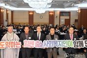 ㈜한국탑뉴스 송행임 기자 | 김태흠 충남도지사와 사회복지 종사자들이 올 한 해도 사각지대 없는 충남 복지를 위해 최선을 다할 것을 다짐했다. 김 지사는 13일 아산 온양제일호텔 열린 ‘2026년 충남 사회복지인 신년교례회’에 참석해 “충남은 더욱 두텁고 촘촘한 복지 안전망을 만들어 나갈 것”이라며 새해 도정 방향과 사회복지 정책 비전을 공유했다. 김 지사는 “오늘날 급속한 고령화와 양극화, 여기에 재난 수준의 기후변화까지 겹치면서 날이 갈수록 사회복지의 역할과 중요성이 커지고 있다”며 “새해에도 사각지대 없는 충남 복지를 위해 함께 힘을 모아달라”고 강조했다. 이어 “현장에서 묵묵히 헌신하는 여러분들의 노고가 있기에 사회복지 정책이 실질적인 효과를 거두는 것이라 생각한다”며 “든든한 동반자로서 늘 함께해 주시길 부탁드리고, 여러분들이 더 나은 환경에서 자부심을 갖고 일하실 수 있도록 끊임없이 노력하겠다”고 격려했다. 한편, 충남사회복지협의회 주최로 열린 이날 행사는 김 지사를 비롯해 도내 사회복지시설장과 유관기관 관계자 등 100여 명이 참석해 새해 인사를 나누고 충남 사회복지 발전 방안을 함께 모