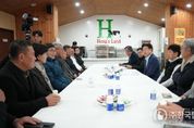 ㈜한국탑뉴스 송행임 기자 | 부안군은 권익현 부안군수가 지난 13일 부안군청 앞에서 집회 중인 초고압 송전철탑 백지화 부안군 대책위원회 천막을 방문해 약 1시간 동안 면담을 진행하는 등 소통에 나섰다고 밝혔다. 이날 면담에는 권익현 군수 등 부안군 직원 6명과 대책위 김상곤·허태혁 공동위원장 등 10여명, 언론인 5명, 새만금 RE100 국가산단 부안 유치 범군민위원회 공동위원장 등이 참석했다. 권익현 군수는 설 연휴를 앞두고 대책위 격려 차 덕담을 주고받기 위해 천막을 방문했으며 면담 초반 일부 참석자와 양육점과 관련된 대화로 다소 격앙된 분위기가 연출되기도 했으나 면담이 끝나고 천막을 나오면서 당사자와 오해를 풀고 악수를 하는 등 소통 행보를 이어갔다. 이날 자리에 함께한 장용석 새만금 RE100 국가산단 부안 유치 범군민위원회 공동위원장은 “후손을 위해서, 잘사는 부안을 만들기 위해서 논의해야지 과거 잘잘못을 따져서 무슨 의미가 있냐”며 “부안의 미래를 위해 발전적인 얘기를 하자”고 강조하며 의견을 절충했다. 이후 논의에서는 상호 입장을 충분히 설명하고 경청하는 과정을 거치며 대화는 원만하게