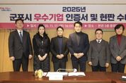 ㈜한국탑뉴스 차복원 기자 | 군포시는 17일 시청 3층 중회의실에서 ‘2025년 군포시 우수기업 인증서 및 현판 수여식’을 열고 5개 우수기업에 인증서와 현판을 수여했다. ‘우수기업 선정사업’은 2022년부터 시작하여 올해 4번째로 추진하는 사업으로 일자리 창출, 세수 증대 등 지역경제 활성화에 기여한 기업을 선정하여 인센티브를 부여하는 사업이다. 선정된 우수기업은 인증기간(3년) 동안 군포시 중소기업 육성자금 지원 시 추가 이차보전, 군포시 관내 공영주차장 이용 시 주차요금 감면, 협약병원 의료비 지원 등의 인센티브가 부여된다. 하은호 군포시장은 “어려운 경제 상황 속 관내 우수한 기업에 활력을 불어넣기 위한 우수기업 선정사업에 관심 가져주심에 감사드리며, 앞으로도 기업지원 사업을 다각화하여 기업 경영하기 좋은 환경을 만들겠다”고 말했다. 올해 선정된 군포시 우수기업은 △(주)아이씨에이치 △㈜지비티코리아 △주식회사예선테크 △듀라텍 주식회사 △㈜트리플닷 으로 총 5개 기업이다.