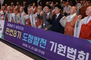 ㈜한국탑뉴스 차복원 기자 | 충청북도와 충북불교총연합회는 11월 21일 김영환 도지사를 비롯한 시·군 부단체장과 충북불교총연합회(회장 정덕 스님), 불교계 인사 등 160여 명이 참석한 가운데 도민의 안녕과 도정 발전을 기원하는‘2025년 민선8기 도정발전 기원법회’를 성대히 개최했다. 이날 행사는 ▲도정발전 기원법회 ▲민선 8기 충북의 일곱 개의 별을 중심으로 한 도정현안 특강 ▲오찬 간담회 순으로 진행됐으며, 참석자들은 화합과 소통 속에서 도민 삶의 행복과 지역 발전을 위해 하나 된 마음으로 기도했다. 도·불협의회는 도내 스님들과 불자들에게 도정 주요 현안에 대한 이해를 높이고, 종교계와 도정 간 소통과 협력을 강화하기 위해 1999년부터 매년 개최해 왔다. 김영환 도지사는 “충북의 발전을 위해 함께 기도해 주시고 변함없는 성원을 보내주시는 모든 분들게 깊이 감사드린다”며 “적극행정을 통한 충북의 과감한 변화와 혁신이 대한민국 전역에 개혁의 훈풍을 일으켜 충북이 전 분야에서 대한민국의 중심에 설 수 있도록 여러 대덕스님들과 불자 여러분의 지속적인 관심과 응원을 부탁드린다”고 말했다.