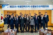 ㈜한국탑뉴스 송행임 기자 | 조성대 남양주시의회 의장은 24일 한강환경유역청에서 열린 특별대책지역 수질보전정책협의회(이하 특수협) 제20차 정책협의회에 참석했다. 이날 회의에는 조성대 의장을 비롯해 김상수 남양주시 부시장, 금한승 기후에너지 환경부 제1차관, 이승환 한강유역환경청장, 경기 동부권 시·군 단체장과 의장, 주민대표 등이 참석했다. 회의는 △운영본부 업무보고 △2025년도 회계감사 결과 보고 △운영규정 개정(안) △공동위원장 선출 △2026년도 운용예산 편성계획(안) △시·군 건의사항 및 주민대표단 건의 순으로 진행됐다. 조성대 의장은 “3년 만에 특수협 정책협의회가 대면으로 이루어진 것에 대해 매우 기쁘게 생각하나, 한편으로 경기 동부권 7개 시·군 시민들이 하루하루 내일이 없는 희망 속에 살아가고 있는 현실을 생각하면 안타깝기 그지없다”고 말했다. 이어 “남양주시는 지난 50년 동안 헌법에 보장된 재산권과 행복추구권을 박탈당하며 일방적으로 희생해왔음에도 불구하고 이에 대한 정당한 보상은 커녕 여전히 각종 규제로 인해 지속적인 고통을 겪고 있다”고 밝혔다. 끝으로 조 의장