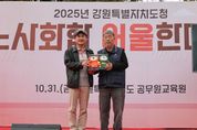 ㈜한국탑뉴스 차복원 기자 | 김진태 강원특별자치도지사는 10월 31일 강원특별자치도 공무원교육원에서 열린 '2025년 노사화합 어울한마당' 행사에서 김동명 한국노총 위원장을 만나 환담을 나눴다. 이날 김동명 위원장은 '2024년 공무원 노사문화 최우수 행정기관'으로 선정된 강원특별자치도청의 체육행사를 방문해 김진태 도지사와 공무원 노사 간 협력적 관계 구축과 상생 발전 방안 등 노사 현안에 대해 의견을 교환했다. 강원특별자치도청 공무원노사는 민선 8기 출범 이후 '노사 상생협력 공동선언문'을 채택하고, 다양한 소통 채널을 통해 협력적이고 생산적인 노사문화를 조성해오고 있다. 김동명 위원장은 “노사화합 어울한마당 개최를 축하드린다”며, “작년에 공무원 노사문화 최우수행정기관으로 선정된 강원도가 앞으로도 노사 상생 문화를 선도해나가길 기대한다”고 전했다. 김진태 도지사는 “노사가 함께 어울리는 어울한마당에 이렇게 방문해주셔서 감사하다”며, “오늘 노사가 함께 웃는 모습처럼 앞으로도 서로를 존중하고 협력하는 분위기 속에서 강원도 발전을 이끌어가겠다”고 말했다. 한편, 한국노총과 한국노총 강원