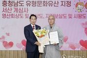 ㈜한국탑뉴스 송행임 기자 | 충남 서산시는 7일 시청 시장실에서 충청남도 유형문화유산 지정서 전달식을 개최했다고 밝혔다. 전달식에는 이완섭 서산시장, 개심사 혜산스님, 부석사 원우스님 등 10여 명이 참석했다. 새롭게 충청남도 유형문화유산으로 지정된 유산은 ▲서산 개심사 영산회상도 및 팔상도 ▲서산 개심사 지장보살도 및 시왕도 ▲서산 부석사 목조여래좌상 등 3건이다. 서산 개심사 영산회상도 및 팔상도, 서산 개심사 지장보살도 및 시왕도는 2025년 10월 30일에, 서산 부석사 목조여래좌상은 2026년 3월 10일 충청남도 유형문화유산으로 지정 고시됐다. 이 시장은 혜산스님과 원우스님에게 지정서와 함께 문화유산 보존을 위한 노고에 대한 감사의 뜻을 전달했다. 서산 개심사 영산회상도 및 팔상도는 1772년 제작된 것으로, 석가모니 부처님의 설법 장면과 생애를 그린 불화다. 경상도 활동 화승 ‘유성’ 등 다른 지역 화승들이 활동한 양상을 보여주는 사례로 평가되고 있다. 서산 개심사 지장보살도 및 시왕도는 1764년 제작된 것으로, 1758년 함께 세상을 떠난 김한신
