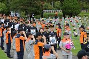 ㈜한국탑뉴스 차복원 기자 | 서울시 소방재난본부는 8월 26일 국립대전현충원(소방공무원 묘역)에서 순직 소방공무원 6位(위)에 대한 합동 안장식을 거행했다고 밝혔다. 이번 안장식은 지난 2023년과 2024년, 사망 시기와 관계없이 국립묘지 안장이 가능하게 되고 안장 자격도 ‘위험직무순직자’에서 ‘일반순직자’까지 확대되게끔 '국립묘지법 시행령'이 개정됨에 따라 이뤄지게 됐다. 이에 서울소방재난본부에서는 올해 국립묘지 안장 예정인 순직 소방공무원 총 23명 중 유가족과 협의된 6명을 먼저 국립대전현충원에 안장했으며, 나머지 17명에 대해서도 연말까지 국립서울현충원에 안장될 수 있도록 차질 없이 준비를 이어갈 방침이다. 이날 행사에는 유가족을 비롯해 소방청, 의용소방대, 재향소방동우회, 순직소방공무원추모기념회 등 200여 명이 참석한 가운데 ▲헌화 및 분향 ▲추모사 ▲합동 안장 순으로 엄숙하게 진행됐다. 서울소방재난본부 권혁민 본부장은 추모사에서 “국민 안전을 위해 사명을 다하다 순직하신 선배님들께 깊은 경의를 표하며, 유가족분께도 진심 어린 위로의 말씀을 드린다”며 “순직 소방공무원의 헌신이 사회 전