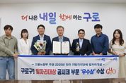 ㈜한국탑뉴스 차복원 기자 | 구로구가 지난 30일 ‘2025년 전국 지방자치단체 일자리대상’ 공시제 부문에서 우수상을 수상했다. 고용노동부에서 주관하는 ‘전국 지방자치단체 일자리대상’은 지방자치단체의 일자리 창출 노력과 성과를 알리고 일자리 책임행정을 강화하기 위해 매년 열리는 시상식이다. 이번 수상으로 구로구는 2016년부터 올해까지 고용노동부가 실시한 일자리 평가에서 10년 연속 수상이라는 대기록을 세웠다. 올해 일자리대상 평가는 전국 243개 지방자치단체(광역 17개, 기초 226개)를 대상으로 고용보험 피보험자 수, 취업자 수, 일자리 목표 달성 여부, 주요 핵심사업 성과 등을 종합적으로 고려해 2차에 걸친 대면 심사를 통해 실시됐다. 구는 작년 1만 4,300개 일자리 창출 목표치를 두고 1만 6,531개의 일자리를 창출하며 공시제 부문 우수상을 수상했다. 목표 달성을 위해 기업, 주민, 학생 등을 대상으로 한 수요 조사와 각계 전문가 의견 수렴을 통해 구로형 특화 일자리 프로그램을 개발했고, 고용노동부 및 서울특별시 등에서 추진하는 일자리‧경제 분야 공모사업에 적극 대응해 약
