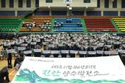 ㈜한국탑뉴스 차복원 기자 | 진안군이 26일 오후 진안문예체육회관에서 군민 500여 명과 주요 내빈이 참석한 가운데 ‘진안양수발전소 유치 성공기원 범군민 결의대회’를 성황리에 마무리하고, 유치 성공에 대한 강력한 의지를 대내외에 선포했다. 이날 결의대회에는 전춘성 진안군수를 비롯해 김관영 전북특별자치도지사, 안호영 국회의원, 동창옥 진안군의회 의장, 그리고 한국동서발전 권명호 사장 등이 참석하여 진안의 도약에 힘을 실었다. 먼저 성공기원공연으로 준비된 붓글씨 공연(캘리그라피)에서는 ‘새로운 시작, 100년 미래 진안양수발전소’라는 문구를 역동적인 붓놀림으로 그리며 진안의 강력한 의지를 예술적으로 승화시켜 참석자들의 큰 박수를 받았다. 이어 진행된 구동수 위원장과 신갑수 위원장의 결의문 낭독 직후 두 위원장의 선창에 맞춰 500여 군민이 하나 된 목소리로 일제히 손 피켓 펼치기 퍼포먼스가 진행돼 군민의 하나 된 힘으로 양수발전소를 진안에 유치하겠다는 결의를 다졌다. 특히, 마지막 유치 성공 다짐 퍼포먼스는 참석자들의 마음을 하나로 모았다. 군민과 주요 내빈들이 행사 시작 전 대형애드벌룬에