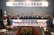 ㈜한국탑뉴스 송행임 기자 | 김명수 광주 광산구의회 의장(더불어민주당, 신흥동·우산동·월곡1·2동·운남동)이 14일 전주 라한호텔에서 열린 대한민국시군자치구의회의장협의회 제270차 시도대표회의에 참석해 ‘특수학급 설치 및 특수교사 정원 확보 촉구 건의안’을 제안했다. 김명수 의장은 건의안을 통해 “특수교육 대상 학생 수는 매년 증가하고 있지만, 이에 비해 특수학급 설치와 특수교사 배치는 여전히 부족한 실정”이라며 “특수학급 과밀화가 심각해지고, 특수교사들은 과중한 업무에 시달리고 있다”고 우려를 표명했다. 이어 “특수학급에 배치받지 못한 학생들은 진학을 유예하거나 다음 배치 기회를 기다려야 하는 실정이며, 그 과정에서 적시에 필요한 교육을 받지 못하는 사례가 지속적으로 발생하고 있다”고 지적했다. 김 의장은 “교육은 모든 국민에게 평등하게 제공돼야 한다”며 “정부가 모든 특수교육 대상 학생이 차별 없는 교육 환경에서 학습할 수 있도록 특수학급 설치 기준을 철저히 이행하고, 필요한 재원을 조속히 확보해야 한다”고 요청했다. 또한 “특수교육 여건 개선과 특수교사 정원 확충은 정부의 국정과제에도 포함되어