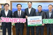 ㈜한국탑뉴스 차복원 기자 | 거창군은 지난 10일 농협중앙회 거창향우회가 고향사랑기부금 500만 원을 기부했다고 전했다. 이날 기부식에는 이종삼 농협중앙회 울산본부장, 최도영 김해농수산물종합유통센터 지사장, 이희열 농협중앙회 거창군지부장, 신화범 북부농협조합장, 김종두 수승대농협조합장 등이 참석해 고향에 대한 깊은 애정을 담아 기부금을 전달했다. 농협중앙회 거창향우회는 거창 출신으로 농협중앙회와 농협은행에 재직하고 있는 향우들의 모임으로 서울과 경남 지역에 재직하고 있는 30여 명의 회원으로 구성되어 있으며, 고향사랑기부제 시행 첫해 500만 원 기부에 이어 올해도 고향의 발전을 응원하며 기부에 동참했다. 이종삼 농협중앙회 울산본부장은 “고향을 살리고 지역의 농가에도 보탬이 되는 고향사랑기부제에 동참하게 되어 매우 뜻깊게 생각한다”며 “앞으로도 고향의 발전을 위해 지속해서 관심을 가지고 다양한 방식으로 고향사랑을 실천하겠다”고 말했다. 구인모 거창군수는 “고향에 대한 애틋한 마음을 기부로 전해주신 농협중앙회 향우님들께 진심으로 감사드린다”며 “소중한 뜻이 지역발전에 큰 힘이 될 것으로 기대한다”고