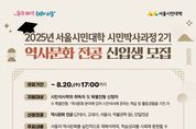 ㈜한국탑뉴스 차복원 기자 | 서울시평생교육진흥원이 운영하는 서울시민대학이 시민의 학습경험을 사회적 가치로 확장하기 위한 ‘명예시민학위제 시민박사과정’ 역사문화 전공 참여자 20명을 모집한다. 명예시민학위제는 서울시장 명의로 수여되는 비공인 학위로, 일정 기준 충족 시 명예시민학사, 명예시민석사, 명예시민박사 학위를 취득할 수 있다. 이 중 시민박사과정은 개인의 학습을 넘어 지역사회 발전에 기여하는 ‘지식 생산자’로서의 성장을 목표로 하는 명예시민학위제 최고위 과정이다. 시민학사학위는 서울시민대학 강좌를 100시간 이상 수강한 이에게 수여된다. 이후 200시간의 학습 활동을 수행하고 학습 결과물을 승인받으면 시민석사학위를, 다시 학습 활동 300시간을 수행하고 결과물이 승인되면 시민박사학위를 받을 수 있다. 명예시민학위 제도 시행 이후 2019년부터 총 1,893명의 시민이 명예시민학위를 취득했으며, 올해 처음으로 박사 졸업생 12명이 배출됐다. 이들은 시니어 디지털 교육, 다문화 이해를 높이는 평생교육 프로그램 개발, 서울 5대 궁궐 비교 연구 등 공공성과 시의성 있는 주제로 학위를 취득했다. 올해
