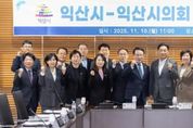 ㈜한국탑뉴스 차복원 기자 | 익산시와 익산시의회가 지역 발전을 위한 협력 체계를 더욱 굳건히 다진다. 익산시는 10일 익산시의회 의장단과 간담회를 열고, 2026년 본예산 반영이 필요한 주요 사업과 현안과제 등을 논의했다. 이번 간담회는 한 해를 마무리하고 다가오는 2026년을 준비하기 위한 자리로, 익산시와 시의회의 협력 관계를 강화하고 현안 해결을 위한 소통의 장으로 마련됐다. 이날 회의에서는 △익산 산업단지 조성사업 △중소기업은행 부지 매입 △익산시 발달장애인 평생교육센터 건립 △다이로운 모아복합센터 건립 등 7건의 주요 사업이 심도 있게 논의됐다. 김경진 의장은 "시의 발전을 위한 좋은 정책과 사업에 있어 시의회와 익산시가 허심탄회하게 소통하고 협력해 현안을 해결할 수 있는 방안을 모색하겠다"고 말했다. 정헌율 시장은 "익산시와 시의회가 함께하는 협력이 지역 발전의 동력이 된다"며 "앞으로도 의회와의 지속적인 소통으로 시민이 공감하는 시정을 펼치겠다"고 강조했다. 한편, 익산시는 올해 시의회와 총 3번의 간담회를 가졌으며, 앞으로도 시의회와의 활발한 소통으로 '위대한