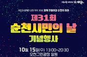 ㈜한국탑뉴스 차복원 기자 | ‘더 큰 미래를 위한 삶의 쉼터, 치유도시 순천!’ 그 새로운 도약을 위한 순천시(시장 노관규)가 오는 15일 오천그린광장 일원에서 24개 읍면동 화합행사와 함께 ‘제31회 순천시민의 날’기념식을 개최한다. 이번 행사는 오후 1시부터 밤 8시 30분까지 28만 순천시민이 하나되어 글로벌 문화산업, 삶이 머무는 치유도시 메카로 발돋움한 일류 순천의 자부심을 높이는 장으로 어울한마당 큰 잔치가 성대하게 펼쳐진다. 이날 펼쳐지는 제31회 순천시민의 날 행사는 지역사회의 화합과 단결을 다짐하고, 순천의 발전을 기념하는 의미있는 시간으로 1부 행사와 2부 행사로 나눠 진행된다. 1부 행사는 오천그린광장 주차장 일원에서 오후 1시부터 오후 5시까지 ▲24개 읍면동 화합을 위한 장기자랑 ▲어린이 한마당 잔치 ▲버블매직쇼 ▲울려라! 도전 순천역사골든벨 ▲읍면동 먹거리부스 ▲순천하세요!(김수련, 양서영, 하숙자 가수의 공연) ▲체험부스 ▲푸짐한 경품 등이 마련돼 가족 단위 방문객에게 인기가 높을 것으로 기대된다. 특히 시민들이 함께 즐길 수 있는 ‘먹거리 부스’에서는 24개 읍면동이 참