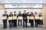 ㈜한국탑뉴스 송행임 기자 | 동작구의회는 31일 의회 어울림홀에서 지역사회 발전 유공 구민 및 단체에 대하여 의장 표창을 수여했다. 이번 표창은 지역 곳곳에서 헌신적인 봉사로 주민 화합을 이끌고, 꾸준한 나눔을 통해 이웃사랑을 실천해온 구민들의 공로를 기리고 감사의 뜻을 전하기 위해 마련됐다. 이날 수상자로는 평소 지역사회에 많은 관심을 갖고 주위의 이웃을 위해 헌신적인 봉사로 타의 귀감이 된 주민 41명과, 어린이 교통안전 교육과 문화프로그램 운영으로 동작구민의 안전 및 복지증진에 기여한 공이 인정된 '서울특별시교통문화교육원'(원장 김창범)이 선정되어 다수의 주민이 참석한 가운데 시상식이 진행됐다. 정재천 의장은 “보이지 않는 곳에서 이웃을 위해 봉사해주신 구민 여러분께 깊은 존경과 감사의 마음을 전한다”며 “동작구의회도 구민과 함께하는 의정으로 지역 발전과 공동체 활성화에 힘쓰겠다”고 밝혔다.