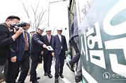㈜한국탑뉴스 송행임 기자 | 조원휘 대전시의회 의장과 송인석 산업건설위원장이 1일 대전 유성구 도안동 호수공원 일원에서 국내 최초로 실시된 3칸 굴절차량 도로 시험 운행 현장을 점검했다. 한편, 대전시가 전국 최초 도입하는 3칸 굴절차량은 향후 6월까지 도안동로 중앙버스전용차로 일부 구간(갑천4블럭~용반네거리)에서 시험 운행 후 전용차로 및 차고지 등 기반 시설 구축 일정에 맞춰 올해 10월까지 단계적으로 개통할 계획이다.