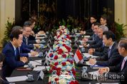 ㈜한국탑뉴스 차복원 기자 | 싱가포르를 국빈 방문 중인 이재명 대통령은 3월 2일 오전 '로렌스 웡(Lawrence Wong)' 싱가포르 총리와 정상회담을 갖고 양국 간 전략적 동반자 관계 심화 방안과 한반도 및 중동정세 등 주요 국제 현안에 대해 폭넓게 논의했다. 웡 총리는 작년 11월 서울에서의 정상회담 이후 4개월 여만에 싱가포르에서 이 대통령을 맞이하게 되어 기쁘다며 “이번 방문은 전략적 동반자인 한-싱가포르 간 호혜적 실질 협력 사업을 가속화하기 위한 중요한 동력이 될 것”이라며 이 대통령의 방문을 환영했다. 이 대통령은 “친한 친구를 만난 것처럼 반갑다”고 화답했다. 이어 웡 총리가 작년 정상회담 때 수교 50주년 만에 양국 간 전략적 동반자 관계를 체결한 것에 대해 ‘좋은 것은 언제나 기다릴 가치가 있다’고 언급한 것을 상기하고, ‘오랜 신뢰의 동반자’인 양국 관계의 새로운 이정표를 계속 세워 나가자고 말했다. 이 대통령은 대외적으로 안보‧경제 환경이 어려운 가운데 양국이 전략적 안보협력, 경제적 연대, 미래·첨단기술 분야 협력이라는 3대 축을 중심으로 협력을 추진해 나가자고 했다. 두 정상은 국방