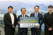 ㈜한국탑뉴스 차복원 기자 | 임실군은 지난 5일, 지역기업 (주)한덴 김병원 대표가 지역사회 발전과 주민 복리 증진을 위해 고향사랑기부금 500만 원을 기탁했다고 밝혔다. 김 대표는 2023년에 이어 두 번째 기부로, 고향에 대한 애정과 지역 상생 의지를 실천하고 있다. (주)한덴은 임실읍에 위치한 낙농품 및 동·식물성 유지 도매 전문 기업으로, 치즈 제조 원료 공급을 통해 지역 낙농산업 및 지역경제에 기여하고 있다. 특히 올해 임실N치즈축제에서 얻은 판매 수익금 일부를 기부하며, 지역 축제의 의미를 지역 환원으로 연결하는 선순환 사례를 보여줬다. 김병원 대표는 “임실이 더욱 발전하기를 바라는 마음에서 수익의 일부를 기부하게 됐다”며“앞으로도 축제 판매 수익 등 기업 활동을 통해 얻은 이익을 지역에 지속적으로 환원하겠다”고 밝혔다. 심 민 임실군수는 “고향 사랑을 꾸준히 실천해 주셔서 깊이 감사드린다”며“기부자의 뜻을 반영해 지역 주민 복지와 지역 발전을 위해 소중히 활용하겠다”고 말했다.