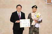 ㈜한국탑뉴스 차복원 기자 | 김해시는 7일 ‘이달의 우수 자원봉사왕’에 임제강(20)씨를 선정해 시상했다고 밝혔다. 임씨는 2014년부터 자원봉사활동을 시작해 활천동 환경정화활동, 노인복지회관 급식봉사활동에 참여해 11년 1개월 동안 지역사회 화합과 나눔문화 확산에 크게 기여했다. 이번 선정은 지난 9월 대전 국가정보자원관리원 화재로 인한 1365 자원봉사포털 시스템 장애로 실적 조회가 어려워 1~8월 우수봉사왕 추천 대상자 중 봉사활동 실적이 많은 차순위 봉사자를 검토해 이뤄졌다. 현재 군 복무 중인 임씨는 한달간 총 19회 74시간 봉사활동에 참여했고 총 누적 봉사 시간은 175회 486시간에 이른다. 임씨는 “어릴 때부터 어머니와 봉사활동을 하며 배운 나눔의 의미를 잊지 않으려 노력했다. 군 복무 중에도 이웃과 지역을 위해 할 수 있는 일을 찾고 싶다”고 말했다. 홍태용 시장은 “어린 시절부터 자원봉사를 생활처럼 이어오며 군 복무 중에도 나눔의 뜻을 잊지 않는 모습에서 진정한 봉사의 의미를 느낄 수 있었다”며 “꾸준함과 진심으로 지역사회에 따뜻한 울림을 전해주신 데