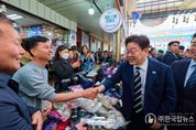 ㈜한국탑뉴스 차복원 기자 | 이재명 대통령은 25일 오후 한국항공우주산업(KAI)에서 열린 KF-21 양산 1호기 출고식에 참석한 뒤 경남 진주시에 위치한 진주중앙시장을 깜짝 방문해 민심을 청취했다. 진주중앙시장은 1884년 개장한 유서 깊은 전통시장으로, 진주 지역의 대표 상업 거점으로 자리하고 있다. 이재명 대통령은 후보 시절이던 지난해 5월에도 이곳을 방문한 바 있다. 상인들과 주민들은 예고 없이 깜짝 등장한 이재명 대통령을 환호와 박수로 맞이했다. 현장에서는 “이재명 대통령 최고!”, “사랑합니다”, "감사합니다", “멋있어요”, “고생 많으십니다” 등 다양한 응원의 목소리가 이어졌다. 이재명 대통령은 시민들과 일일이 눈을 맞추며 인사했고, 셀카 촬영에 응했다. 특히 아이들을 지나치지 않고 몇 살인지 묻는 등 세심하게 소통하며 함께 사진을 찍었다. 이재명 대통령은 시장 곳곳을 둘러보고, 상인들에게 장사가 잘되는지 묻는 등 현장의 목소리를 청취했다. 이재명 대통령은 상추와 애호박 등을 현금과 온누리상품권으로 구입했고, 귤과 꼬치전, 호떡, 엿, 딸기 등을 즉석에서 맛본 뒤 구입했습