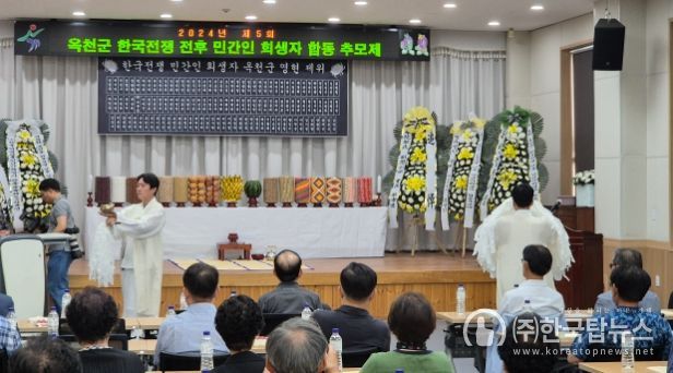 (주)한국탑뉴스 송행임 기자 | 지난 17일 옥천군 다목적회관에서 제5회 한국전쟁 전후 민간인 희생자 합동 추모제가 개최됐다.