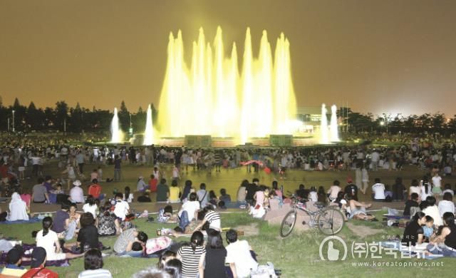 한편 일산호수공원의 노래하는 분수대도 더위를 식히기에 제격이다. 광장의 계단·바닥 분수 시설은 매일 운영(낮 12시~오후 6시, 화요일 휴장)한다. 특히 밤이 되면 노래하는 분수대는 음악과 함께 화려한 조명이 어우러진다. 분수대는 7~8월 동안 수~금요일, 주말과 공휴일에 가동하고 오후 8시와 8시 30분 두 차례 공연을 선보인다.